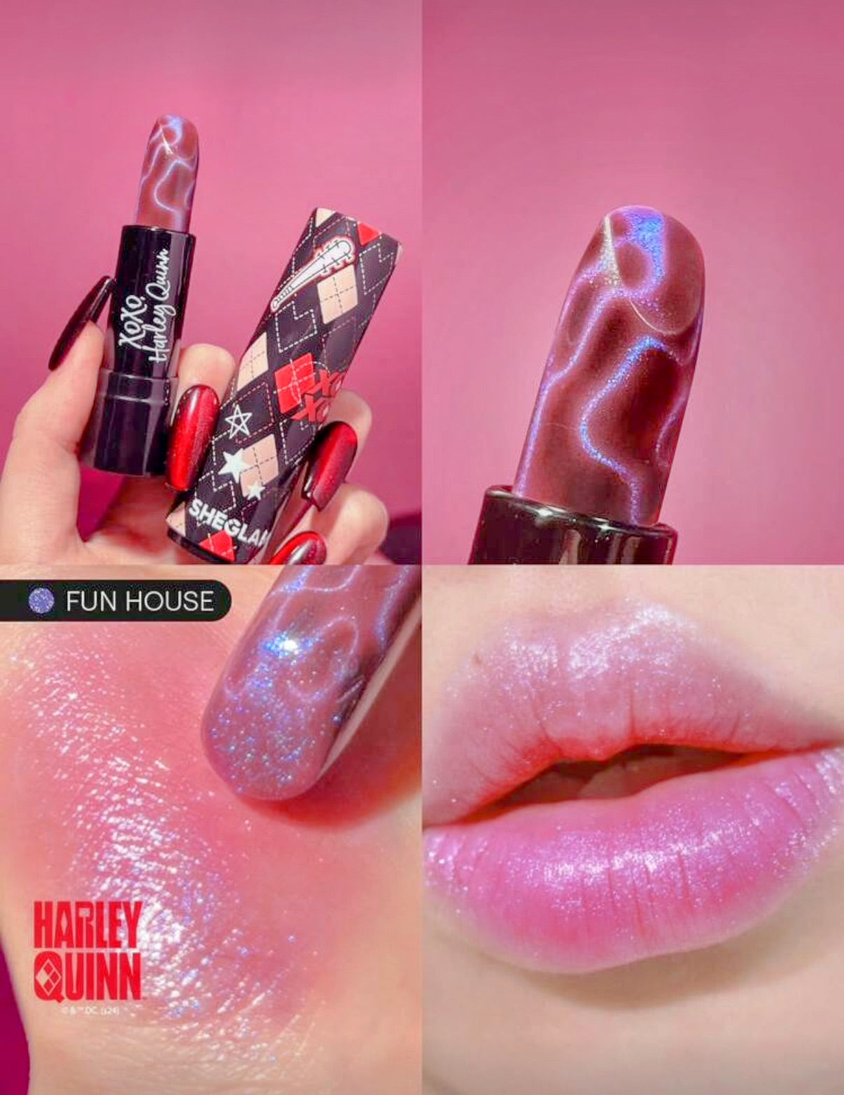 Whether you choose Funhouse for a bright, playful pop or Arkham for a deeper, daring hue, each lipstick delivers a smooth, creamy texture with a long-lasting, hydrating finish.