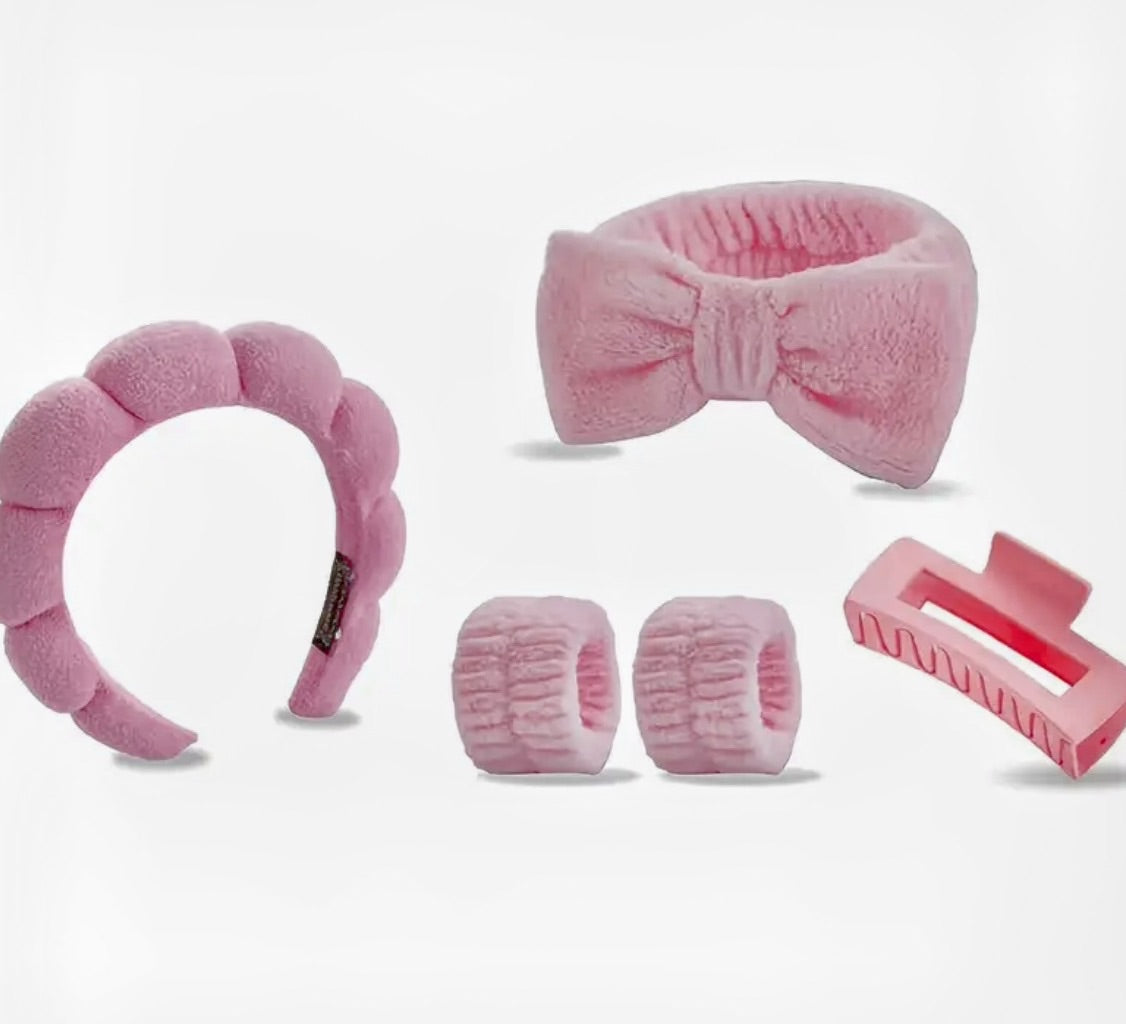 The set includes a Hello Kitty bow headband, matching wristbands to prevent water from running down your arms, a soft hair headband, and a cute Hello Kitty hair clip to secure stray hairs. Made from soft, comfortable materials, each piece is gentle on hair and skin while staying in place during use.