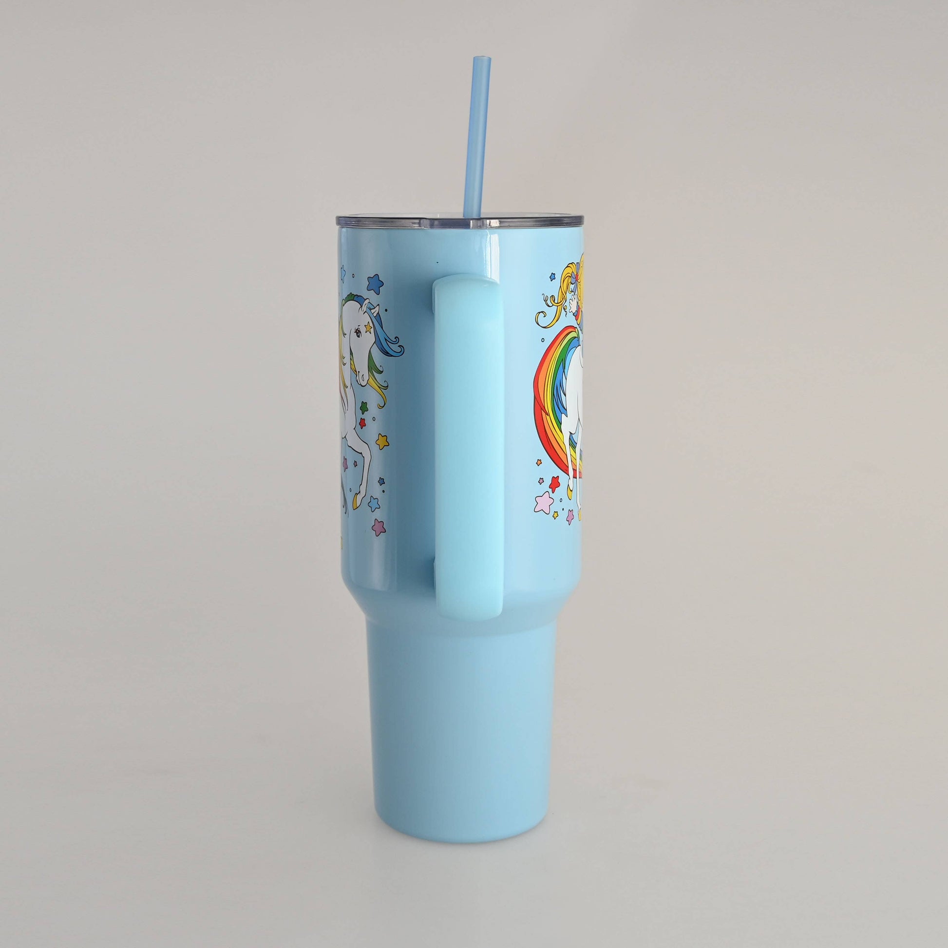 The convenient handle makes it easy to carry, whether you're at home, work, or on the go. Ideal for hydration during any adventure, this tumbler combines functionality with the beloved charm of Rainbow Brite!