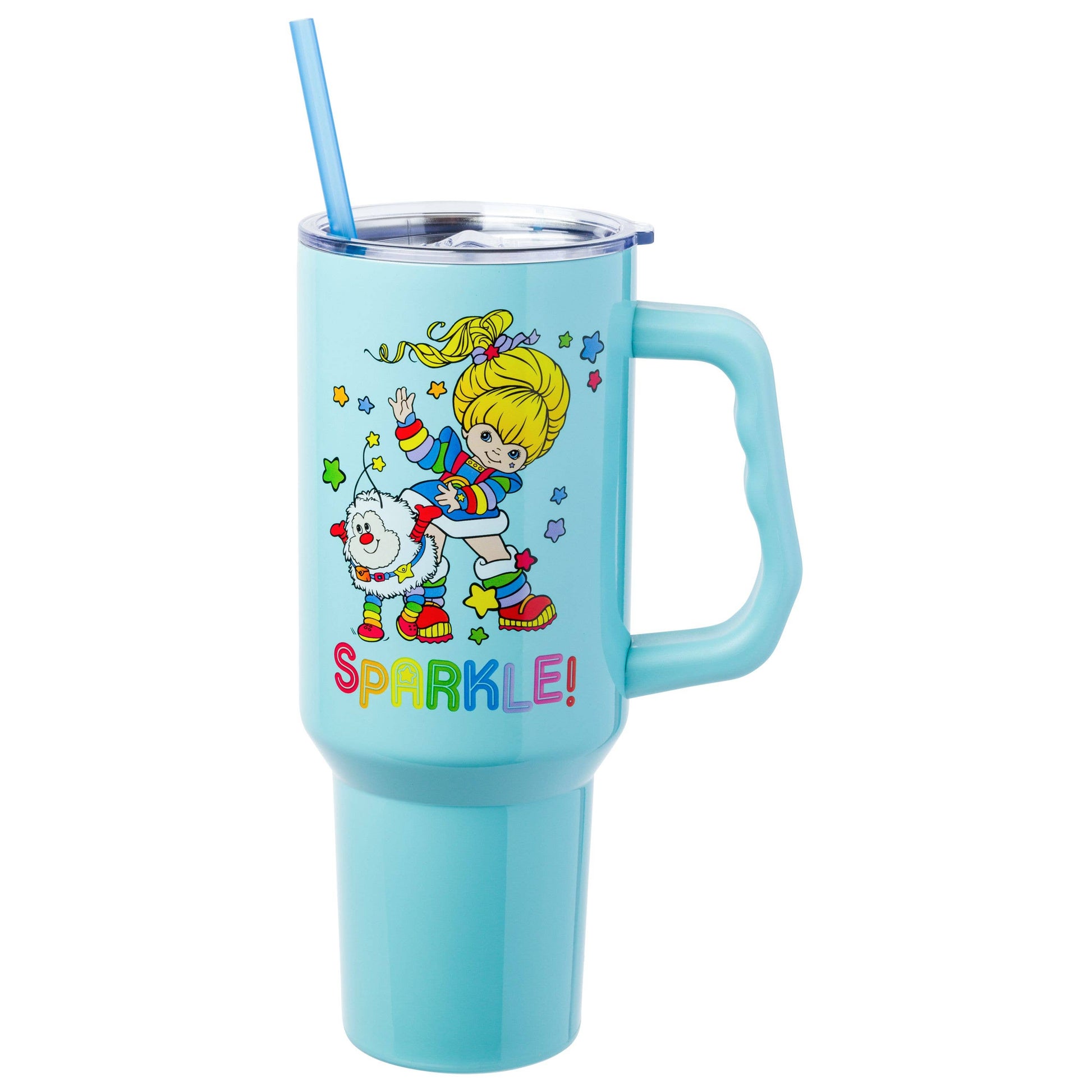 Bring a splash of color and nostalgia to your day with the Rainbow Brite Twink Sparkle 40oz Stainless Steel Tumbler!